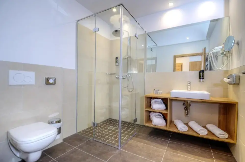 Das ganze Hotel ist modern und geschmackvoll eingerichtet. Die Zimmer sind geräumig und sauber. Tolles Bad mit großer Regendusche. Die Betten sehr angenehm. Sehr ruhige Lage. TOP Frühstück mit hochqualitativen Produkten aus der Region (Abendessen hatten wir nicht gebucht). Die Besitzer, eine nette Familie, waren sehr freundlich und außerordentlich bemüht. Insgesamt einer der schönsten Aufenthalte, die wir bisher hatten.